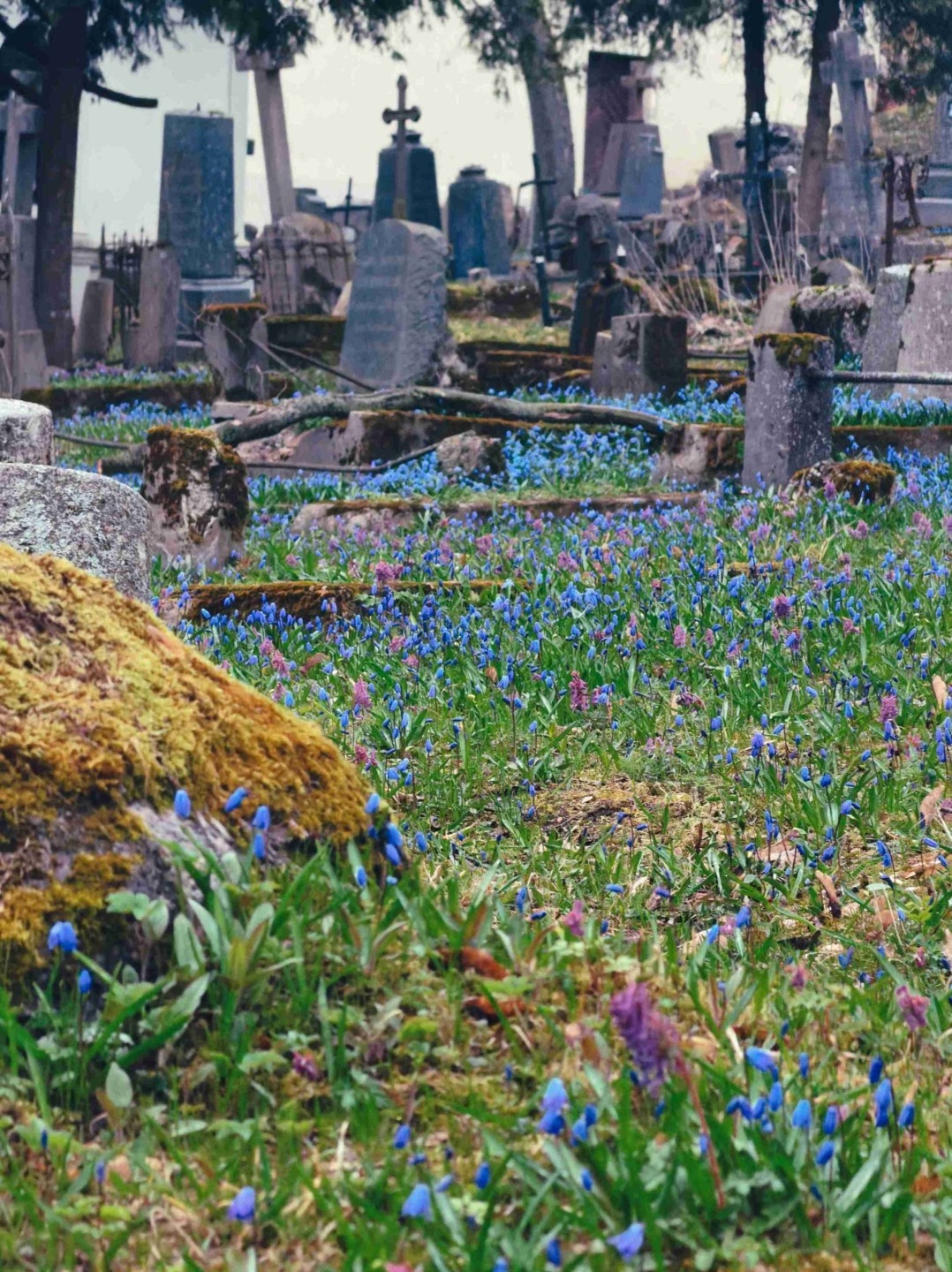 No dia seguinte, apesar de alguma chuva, fomos visitar o tal cemitério e realmente foi algo que nunca tinha visto na vida, apesar de ser um local incomum de visitar, realmente ver um manto de azul a cobrir o chão foi algo lindo.