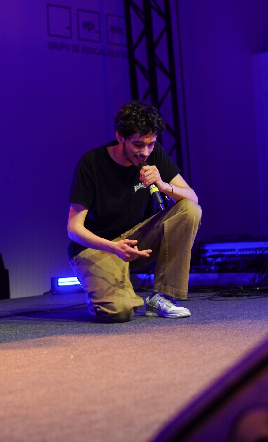 A abertura ficou a cargo de Gonçalo Melo, que aqueceu o ambiente com um DJ set sólido e cheio de energia. Entre rimas afiadas e flows distintos, subiram depois ao palco Bombadas, Vidal, Raffety & Flama, Nogivestome, Jov1 e Bvrtolomew! A diversidade de estilos mostrou bem a vitalidade da cena que está a nascer dentro da ETIC.